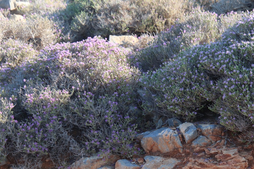 Even though it is late in the season, there are still plenty of thyme plants blooming in the back country. The low scrubby plants are covered with beautiful, purple flowers and busy bees.